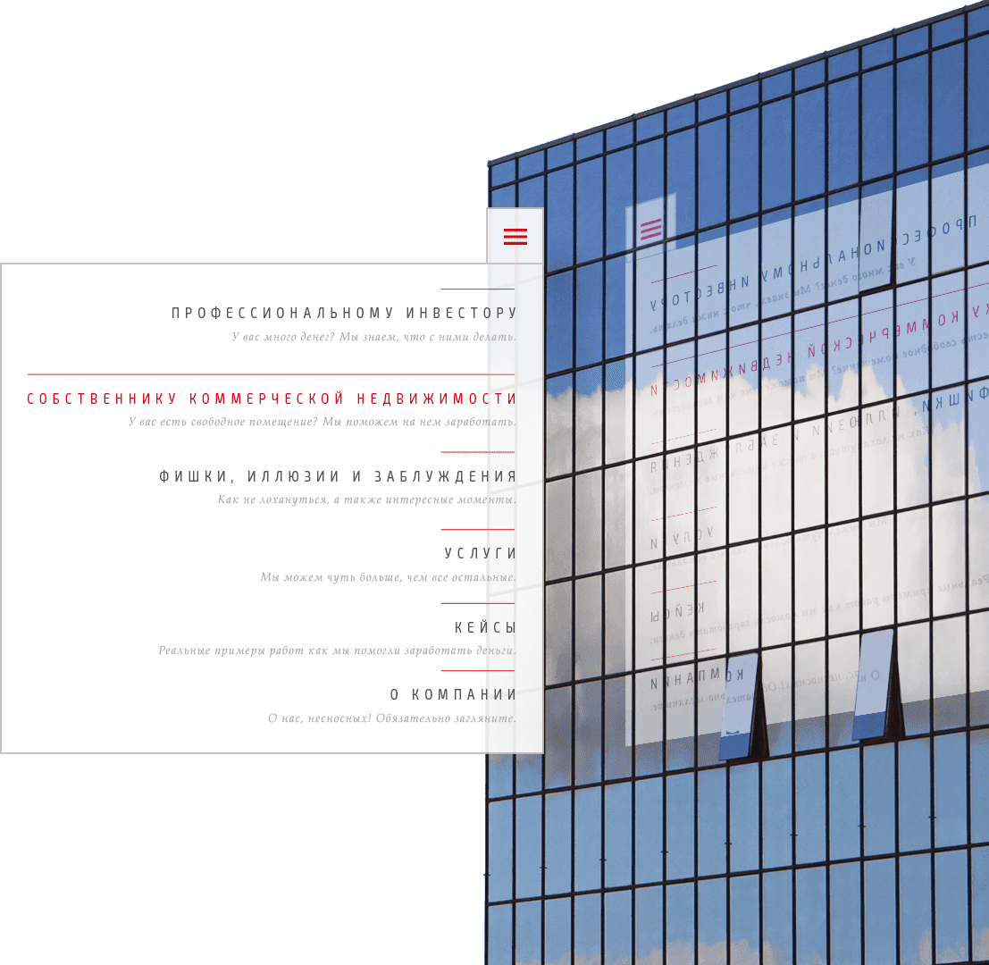 Хороший пример, как компания помогает своим заказчикам зарабатывать в сфере коммерческой недвижимости. У них интересная философия, интересные кейсы, нестандартный подход.
