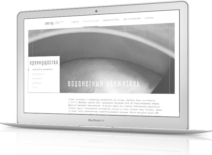Каждый катер описан и представлен на отдельной странице, описаны его ключевые характеристики, преимущества и особенности.