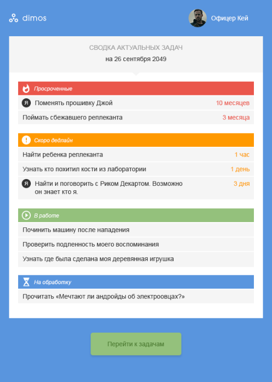 Проделана большая работа, два раза переделана логика постановки и делегирования задач, реализовано множество удобных и эффективных навигационных и интерфейсных решений.